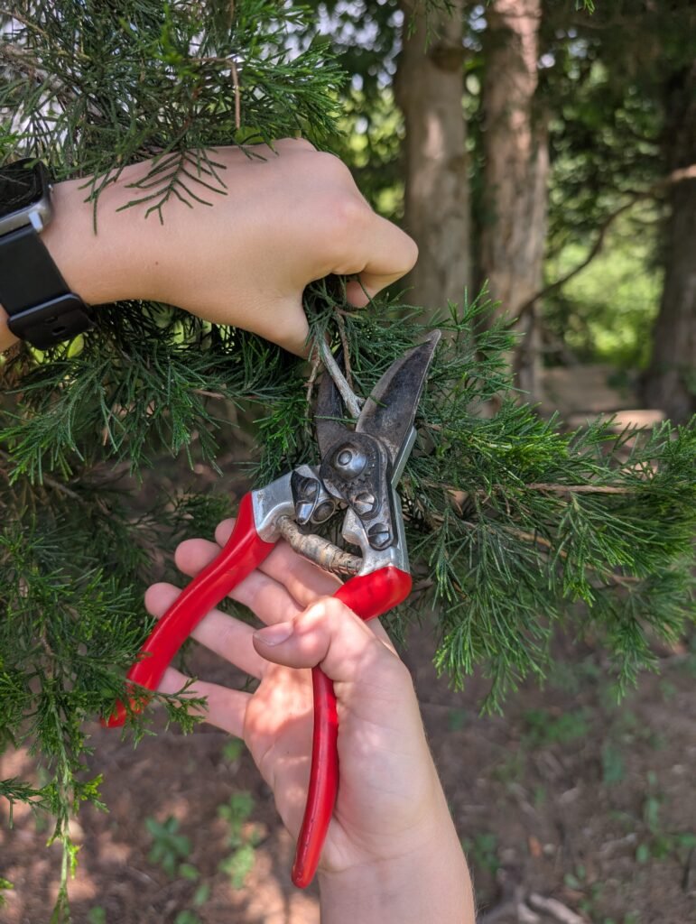 A sharp, reliable pair of pruners is always one of my top tool recommendations for any gardener. I prefer the classic red handled bypass pruners by Felco (red handles are harder to lose in a pile of leaves- ask me how I know!). While they do come with a high price tag, they will last decades if cleaned, greased, and sharpened regularly. Most of my gardening pants have a pocket specifically for pruners, but if they don’t, I can also use a holster on my belt. I like this double pocket holster since it has a spot for my pruners and then a pair of my favorite garden snips. I discussed these pruners and more of my favorite tools here if you need more ideas.